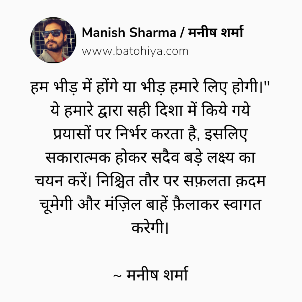 ज़िंदगी अवसर तो सभी को देती है कोई भुना देता है, कोई गंवा देता है ~ मनीष शर्मा