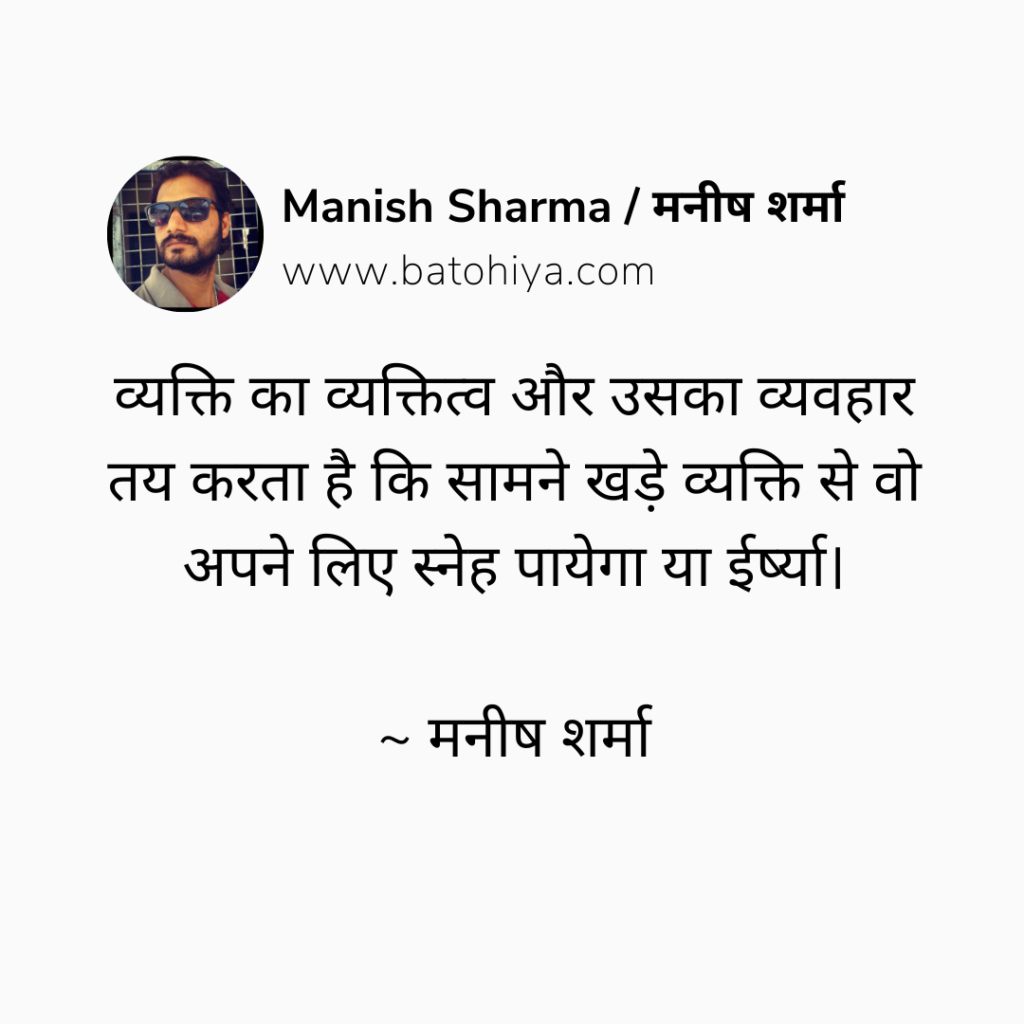 अहंकार ले जाता गर्त में, तो स्वाभिमान दिलाता सम्मान जिसने समझा फ़र्क इनके मध्य का, वो कहलाया महान ~ मनीष शर्मा