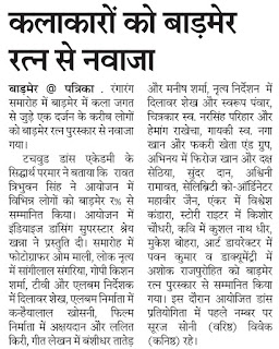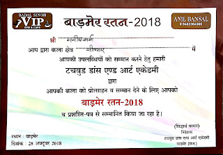 I was honored the Barmer Ratan 2018 as a lyricist in my city indraprasth resort at barmer (rajasthan)