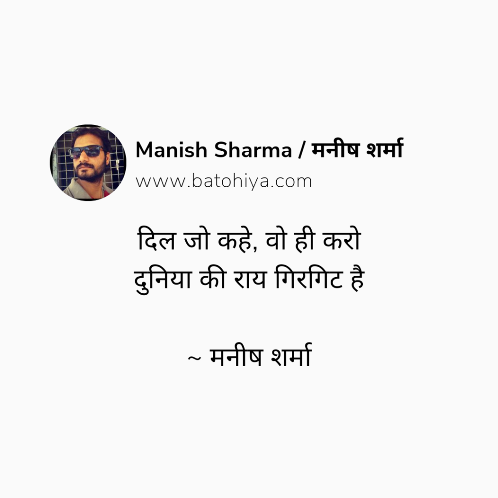 दुनिया केवल उसी व्यक्ति को पहचानती हैजो व्यक्ति ख़ुद को बहुत अच्छे से जानता है ~ मनीष शर्मा