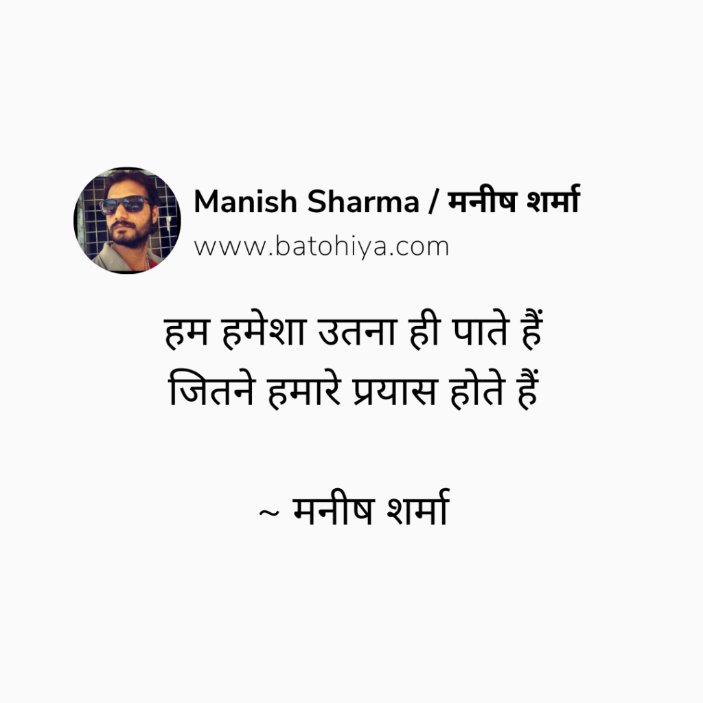 बिना भटके भी मंज़िल पाई है उन्होंनेजिन्हें बटोहिया सही मिल गया राह में ~ मनीष शर्मा