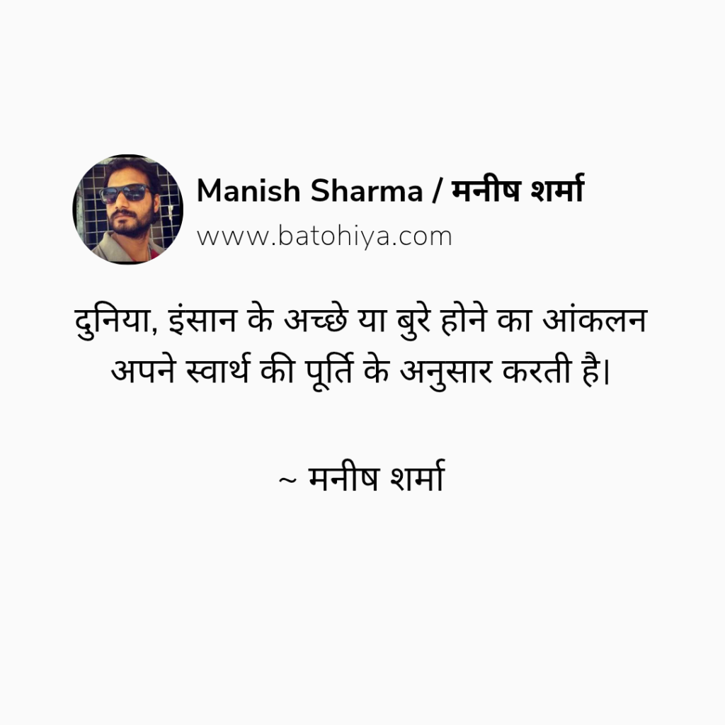 जब ज़िंदगी पूर्णतया सिर्फ़ और सिर्फ़ हमारी है तो फिर इस पर हक़ और फ़ैसले दूसरों के क्यों? ~ मनीष शर्मा