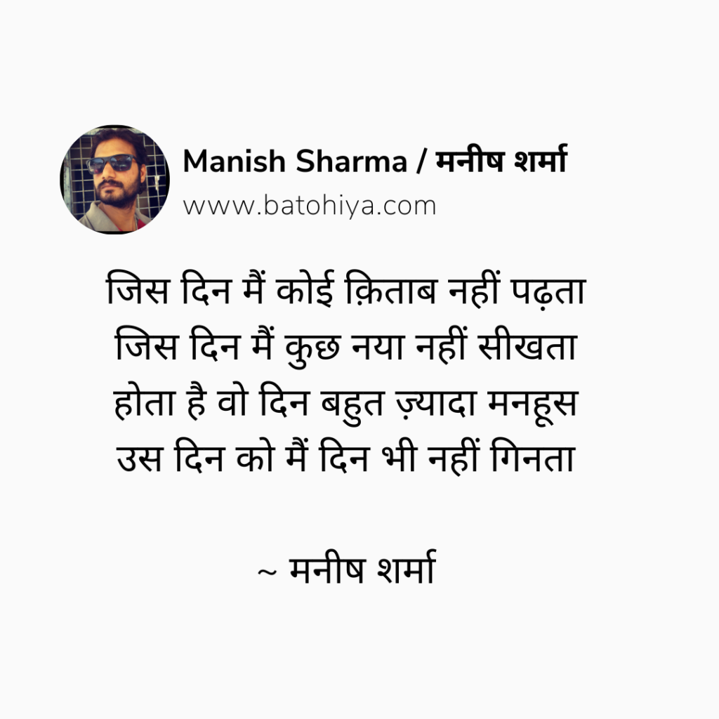 रहता तो मैं भी इसी जहाँ में हूँ पर मिलता मैं बस ख़ुद ही से हूँ ~ मनीष शर्मा